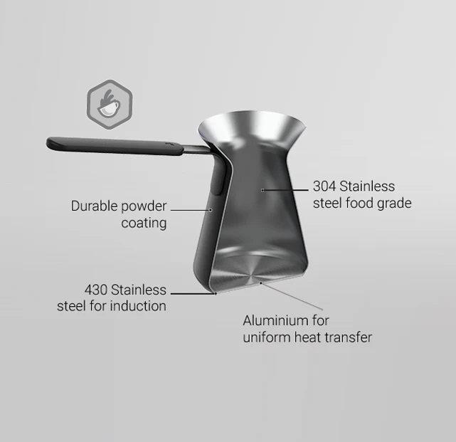 Turkiškos kavos kavinukas Goat Story, dar kitaip vadinamas ibrik ar çezve. Ikoniškasis kavinukas dabar pritaikytas ir šiuolaikinei moderniai virtuvei. Pagamintas iš dviejų rūšių plieno ir aliuminio, vienu metu galima paruošti iki 5 puodelių kavos arba 550ml. Tinka visų tipų kaitlentėms, įskaitant indukcinėms.